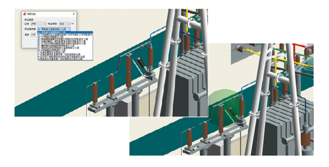 支持预置量化数据,利用三维空间距离计算功能,可完成防雷保护、电气净距、防火净距、运输净距的自动校核,提高工程设计质量。